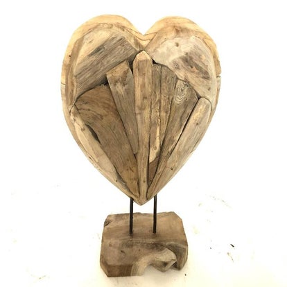 Houten hart op standaard. 40 cm hoog en 20 cm breed